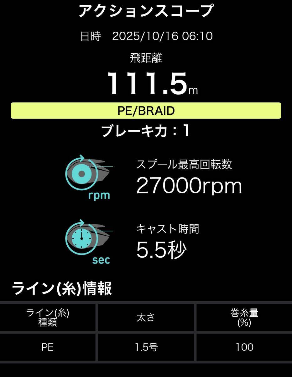 ここからさらなるスプール回転数は私個人の技量強化が必要と思います。なので、いったん飛距離チャレンジは中断し、コツコツとノンビリとキャストフォームとか訓練していきます。